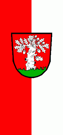 It is a red-white vertical bicolour. The coat of arms is shifted to the top.