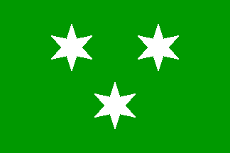 On a green field, three white six-pointed stars, arranged 2,1. Probably in error.