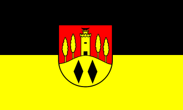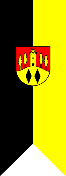 It is a black-yellow verticalal swallow-tailed bicolour. The coat of arms is shifted to the top.