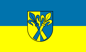 It is a blue-yellow vertical bicolour. The coat of arms is shifted to the top.
