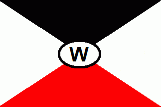 This variant (see right image above) was a blue over red horizontal bicolour. In the centre of the flag was a white 5-point star with a black serifed capital "W".