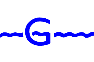 The company is based in Næstved. The 1st flag is white with horizontal blue wave, interrupted by a slightly wavy blue "G" (see left image above). The 2nd flag is the same but the blue wave was replaced by two thinner light blue waves (see right image above).