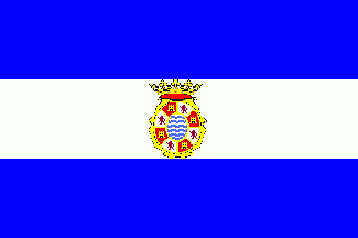 Coat of arms: In Spanish shape. Fessy wavy azure and argent a bordure compony of Castile and León (that is, castles or on gules and lions gules on argent). The shield surmounted by a Royal crown.