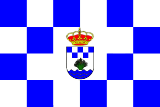 Flag: Rectangular flag, in proportions 2:3. Composed of a panel with 24 square, 12 blue and 12 white. Charged in the center, on a white square covering four squares with the coat of arms of Valdehüncar.