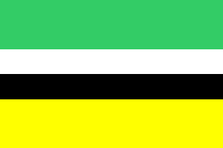 A horizontally striped flag, green-white-black-yellow in proportions 2+1+1+2 – colours from the city arms, as it appears in the city webpage.