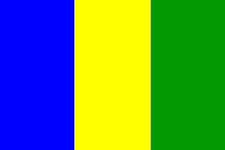 Flag: Rectangular panel, one and a half longer than wide, vertically divided in three equal parts, the first, at hoist, blue, the second, yellow and the third, green.