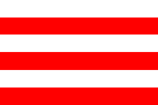 The Rochechouart ostensions flag (photos, video) is horizontally divided white-red-white-red-white-red.