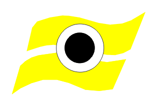 Carga e Transportes (Cargo and Transportation), the Monday's supplement to the Portuguese newspaper Público shows a yellow flag with a large black disc centered charged with a narrow grey ring near the edge.