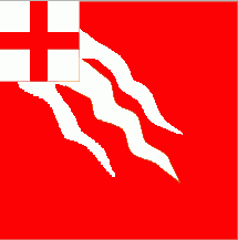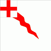 St George at the upper hoist. There is one device in the middle of the flag, a