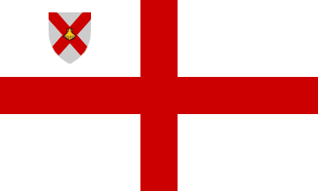 the flag is white with a St George cross, and in the canton / upper hoist corner