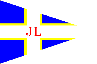John Latsis (London) Ltd., London - blue burgee, white cross bordered yellow; red "JL".
