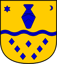 The coat of arms of Kamanje is "Or a conjoined double bendlet wavy azure in the chief a Neolithic vase between a mullet and a crescent increscent and in the base seven lozenges one between sinister three in bend dexter three in bend sinister all also azure".