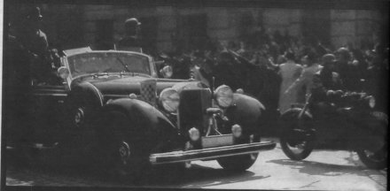A photo published in Jutarnji list, 8 January 2005, from the book in preparation 1941 by Slavko Goldstein, shows the reception of a foreign high delegation on the Borongaj military airfield in Zagreb, 1941. The Poglavnik's car is in front with his personal standard attached on the right fender. A black and white photo shows a ceremonial parade in Zagreb, 1941, probably in some other occasion, with the same flag on the car.