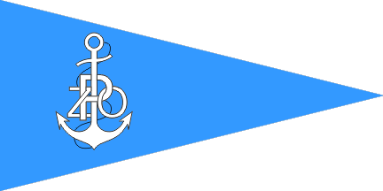 The house flag of Duba, as shown by Isaić [isa01], is a light blue triangular pennant with a white anchor and the white initials "ZPO".