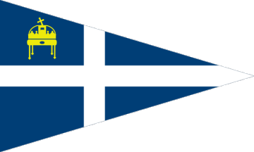 Estb: 1867. Location: Zakonyi Ferenc utca 2, Balatonfured. Burgee: Pennant circa 9:15 (web image). Blue field charged with a white St.George’s cross and a yellow St. Stephen’s crown in the canton. Source "Following the English example, a group of Hungarian noblemen founded the first sailing club of Hungary called the Yacht Club of Balaton-Füred on 16 March 1867. . . . Count Ödön Batthány, who sailed and won regattas in England, became the president of the Club. . . . The development of Hungarian sailing was facilitated by the fact that in 1881 an English shipbuilder, Richard Young started to build the first sailing boats in his workshop located next to our present-day clubhouse. . . . On 14 September 1884, the Stefánia Yacht Club was founded, and Duke Mihály Esterházy became its Commodore. . . . The clubhouse, which was built based on the plans of Alajos Hausszmann, is the building of ’Vitorlás’ Restaurant today. . . . On 24 June 1912, the name of the Club was changed into Hungarian Yacht Club, but in the next year it was changed again, and with the permission of the Interior Minister and with the approval of the King, the Club was named Royal Hungarian Yacht Club. . . . In 1948, after World War II, the Home Office dissolved every social organization, the Royal Hungarian Yacht Club as well. It gave the right of property management of the clubhouse over to the Balaton Shipping Workers Sports Club. The founder and organizer of this Club was István Németh, who became also the president of the National Social Yachting Association. The Club was named Balatonfüred Vasas SC in 1951. . . . In 1964, the new three-storey clubhouse was built in the place of the old ’inner shipyard’, thus the Club already bearing the name MHD Vasas moved from the building designed by Hausszmann, and gave it over to Hungar Hotels. . . . On 22 April 1990, the General Assembly of the Club voted for a statute and a new name. The Balatonfüred Sport Club was established, which included six sections. A sailor, Károly Simon was elected president of the Club. . . . In 1996, the Sports Law passed the ownership of some sports properties to their operators. Thanks to this law the BSC submitted a tender and it became the owner of the sailing site, the football field and another area. Sailors raised the idea of becoming independent because they aimed to adapt quickly to the changing social situation. Following long preparatory negotiations, sailors and water hikers seceded the BSC and founded the Balatonfüred Yacht Club non-profit organization.” Source: (Translation by Google, accessed 14 April 2019).