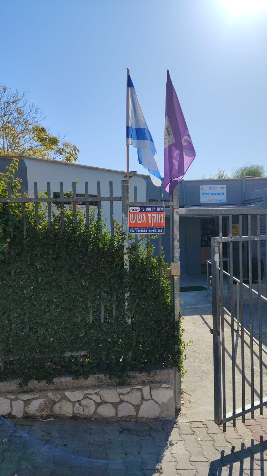 The government of Nof HaGalil uses a variant of its flag without text, and its coat of arms is placed diagonally to appear upright in photos. Image can be seen here (picture).
