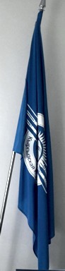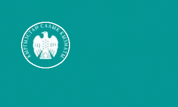 "Flag of Tax Service of Kyrgys Republic is a rectangular field made from silk of blue-green colour, length of the field is 2500 mm, height - 1500 mm. Depiction of the Sign of the Tax Service is placed on the obverse side of the field, distance from upper and hoist edge to the Sign - 300 mm.