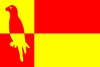 Its flag is partly derived from the Coat of Arms. The bird is a falcon; in olden