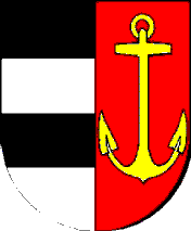 The flag and Coat of Arms are based on the old village-arms: silver two fesses noir. They were granted end 2003.