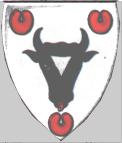 Exmorra Coat of Arms: red, charged with five golden cloverleaves, placed 3:2,