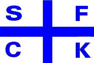 flag: white with a blue St. George's cross; on each quart blue letters SFCK.