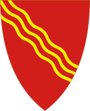 Blazon: I raudt ein gull bølgjeforma trillingstreng, skråstilt høgre venstre.
