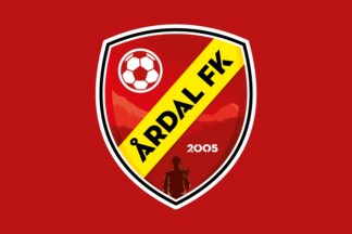 The flag of Årdal FK (Årdal Fotballklubb) from Øvre Årdal in Årdal Municipality is red with the badge centered.