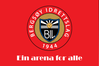 The flags of Bergsøy IL (Bergsøy Idrettslag) from Fosnavåg in Herøy Municipality are red or red diagonally over white with the badge centered.