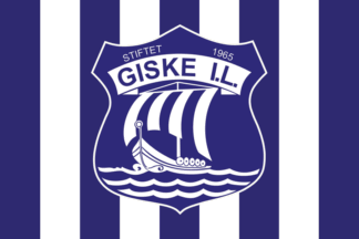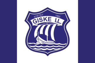 The flags of Giske IL (Giske Idrettslag) from Giske (village and island) in Giske Municipality are vertically striped dark blue and white with the badge centered.