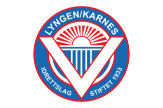 The flags of Lyngen/Karnes IL (Lyngen/Karnes Idrettslag) from Lyngseidet in