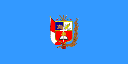A photo taken in 2009 during the Llapa festival ("feria") confirms the flag as light blue, in proportions 1:2, with the coat of arms of the middle.