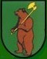 Flag adopted on 20 Dec 1996. The mayor (Polish: burmistr) uses a green flag with a brown bear (BoA). The black or dark brown outlines of the bear are depicted on the cloth.