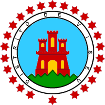 The central device might be a colored armorial seal (but the charges are not those of the Viseu municipal arms), surrounded by 24 six-pointed red stars, symbolizing the district’s municipalities.