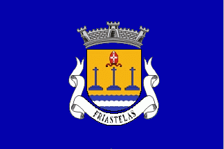 The three calvaries are a local monument, called Calvário de Friastelas. The mitre is an attribute of St. Martin, the local patron saint. The waves in base are symbolizing the riches of water, which gave the power for numerous local water mills in the past.