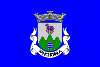 Shield Argent, on a triple mount Vert issuant from the base a fountain, in chief a sheep Purpure with eyes Gules and garnished Argent. Mural crown Argent with three visible towers (village rank) and white scroll reading "PANCHORRA" in black upper case letters.