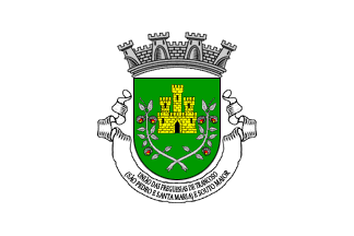It is a typical Portuguese communal flag with the coat of arms centred on a plain white field.