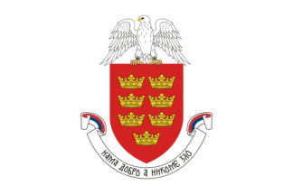The coat of arms of Kraljevo is "Gules seven Royal crown open or (2+2+2+1).