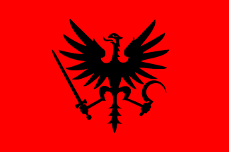 dexter talon and a sickle in the sinister talon, all black, and is charged on
