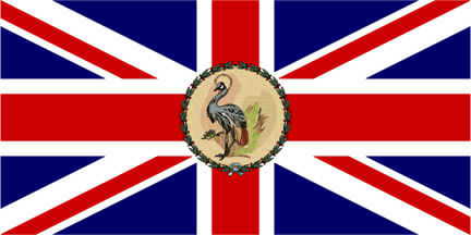 "A bird, the African Balearic Crane, shown in its full natural colouring, is symbolic of Uganda. The Union Flag shows it surrounded by the garland, the Blue Ensign has it without the latter." (Source : Carr's Flags of the World, 1961 (p. 98) [car61] .