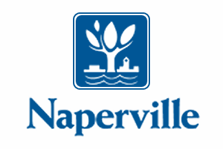 The city flag is white with city logo on it, as can be seen on photos here: www.naperville.il.us/dynamic_content.aspx?id=7410.