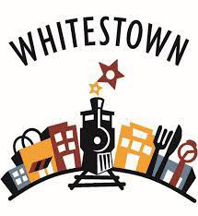 The flag for the town of Whitestown, Indiana consists of the logo centered horizontally on a white background.