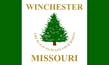"Winchester's flag was the creation of then 14-year-old Harold Holmes Jr., who was the winner of a flag design contest in February 1979. "According to Harold, the design was brought about because he felt that Winchester was a good city to live in. It was a safe, family oriented place where everyone knew their neighbors," City Administrator Barbara Beckett Beckett said. His tree idea came from his visits to Reber Park. "Harold lived on a street named Evergreen so he thought the evergreen tree was appropriate. The roots on his tree were significant to the flag phrase 'the place to plant your roots,' which followed his idea that Winchester was a good place to raise a family," Beckett said."
