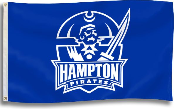 Institutional flag is a white seal on blue, with “Hampton University” in white