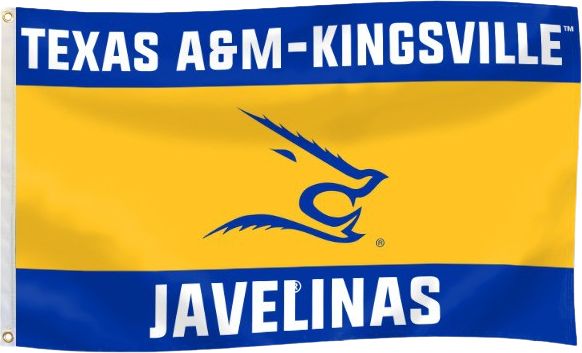 TAMUK has a logo flag, with logo and text in white and gold on a royal