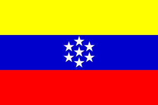 Flag of the Federation, February 1859 - The established Provisional Governing Corp in Coro, city on the Northwest of Venezuela and present capital of the Falcon State, is gone too far in its presumed faculties and decrees that the Flag of the Venezuelan Federation would be the same one of 1836 but with inclusion of seven five pointed and blue stars on the yellow stripe in memory of the Provinces that founded the Nation on 1811.