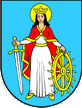 b) Gules in base a mount Vert at fesse point a sword in bend Argent hilted Or surmounted by a mitre of