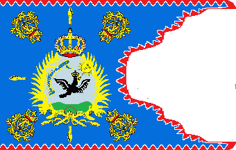 A variation of the swallow-tail in which the cut in the fly of the flag is shaped by several curves, and was formerly typical of the flags used by Prussian later German cavalry regiments (see also descate, palm, guidon 2), indentation(s), rounded swallow-tail and swallow-tail(ed)).